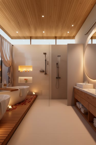 Zonas de convivencia con energía yang (luz, vida) y recámaras más yin (silencio térmico, penumbra cálida).Cinco elementos en armonía